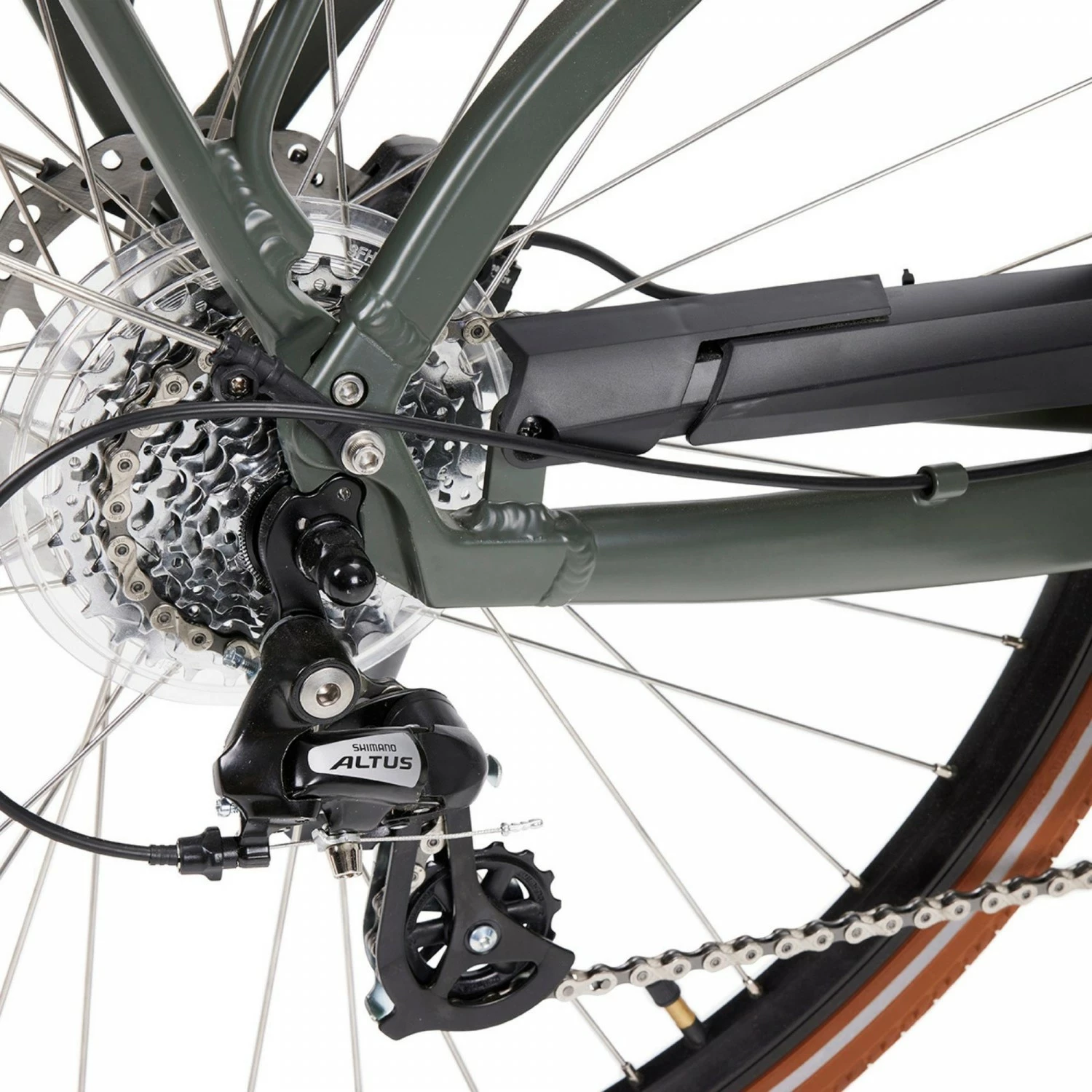 Son dĂ©railleur Shimano Altus dispose de 8 vitesses, gĂ©rable via des manettes indĂ©xĂ©es.Â
