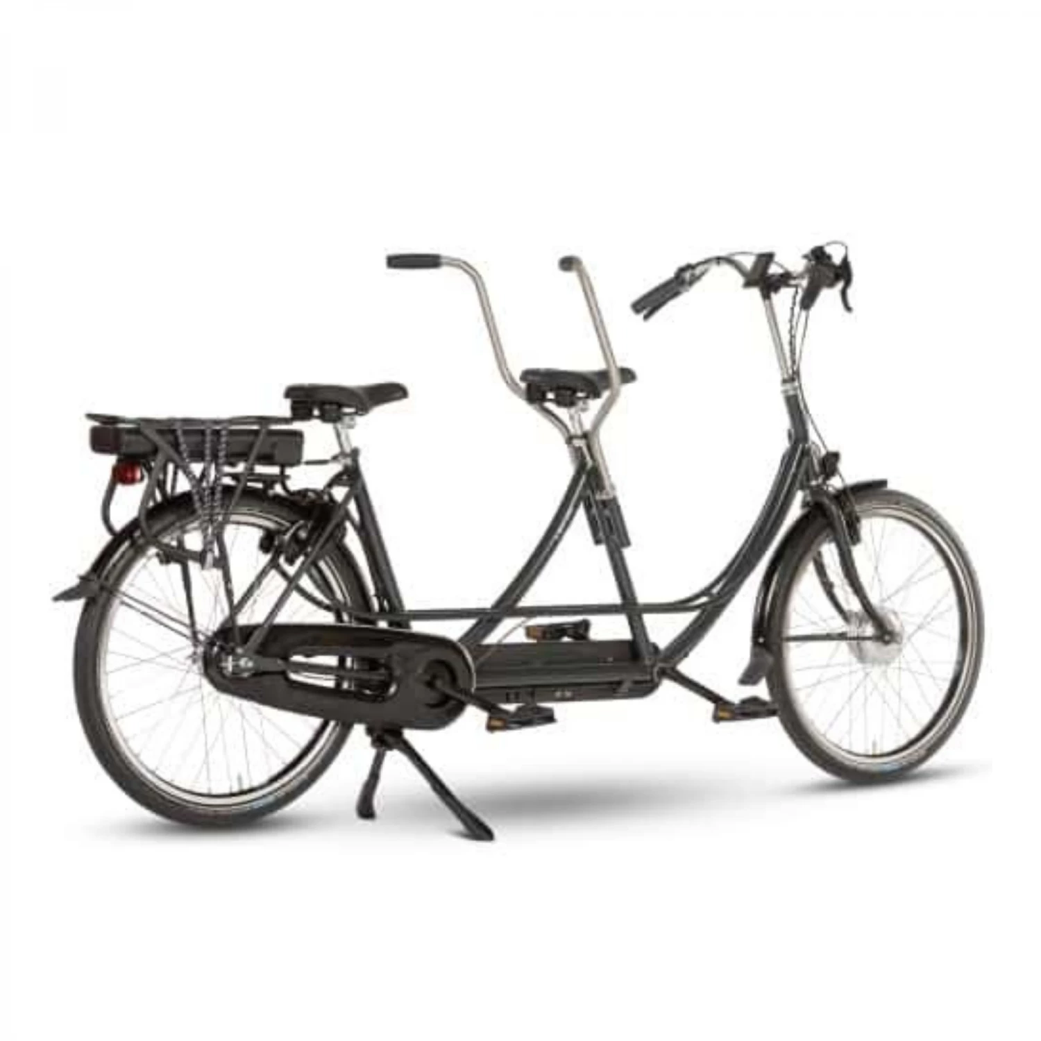 Ce tandem au style hollandais est équipé d’un moteur situé sur la roue avant, réactif et puissant.