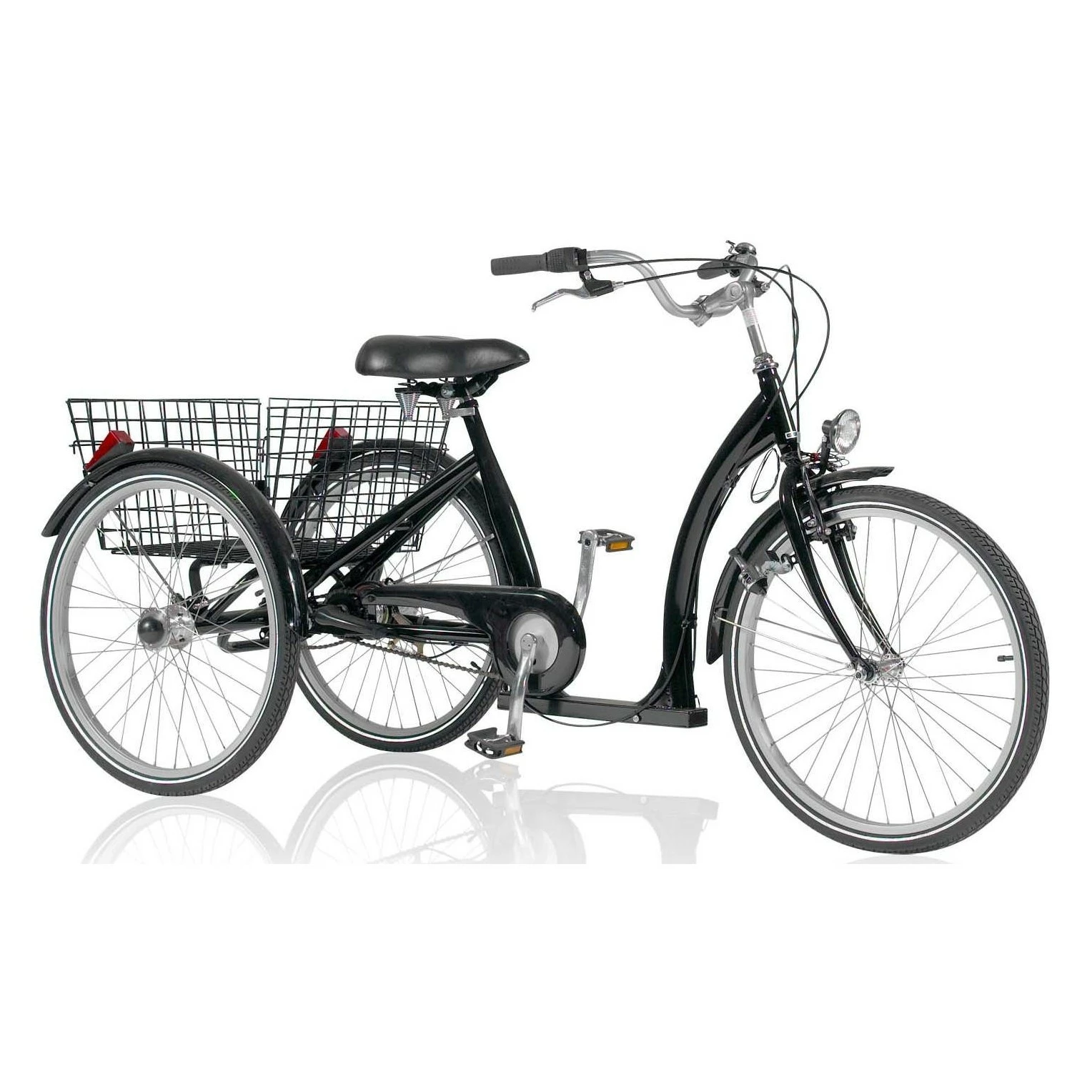 Ce tricycle pour adulte Ă©quipĂ© de 3 vitesses dans le moyeu sturmey Archer qui peuvent ĂŞtre changĂ©es mĂŞme a l’arrĂŞt il dispose Ă©galement d’un marchepied bas (19cm) pour un enjambement aisĂ©. Le panier est fourni.