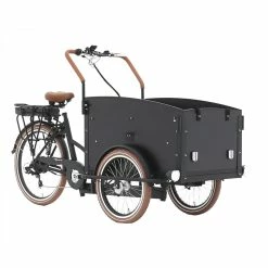 Bakfiets triporteur électrique TROY avec bac en bois 2 banquettes de 2 places (4 places) bâche de pluie avec fenêtre.