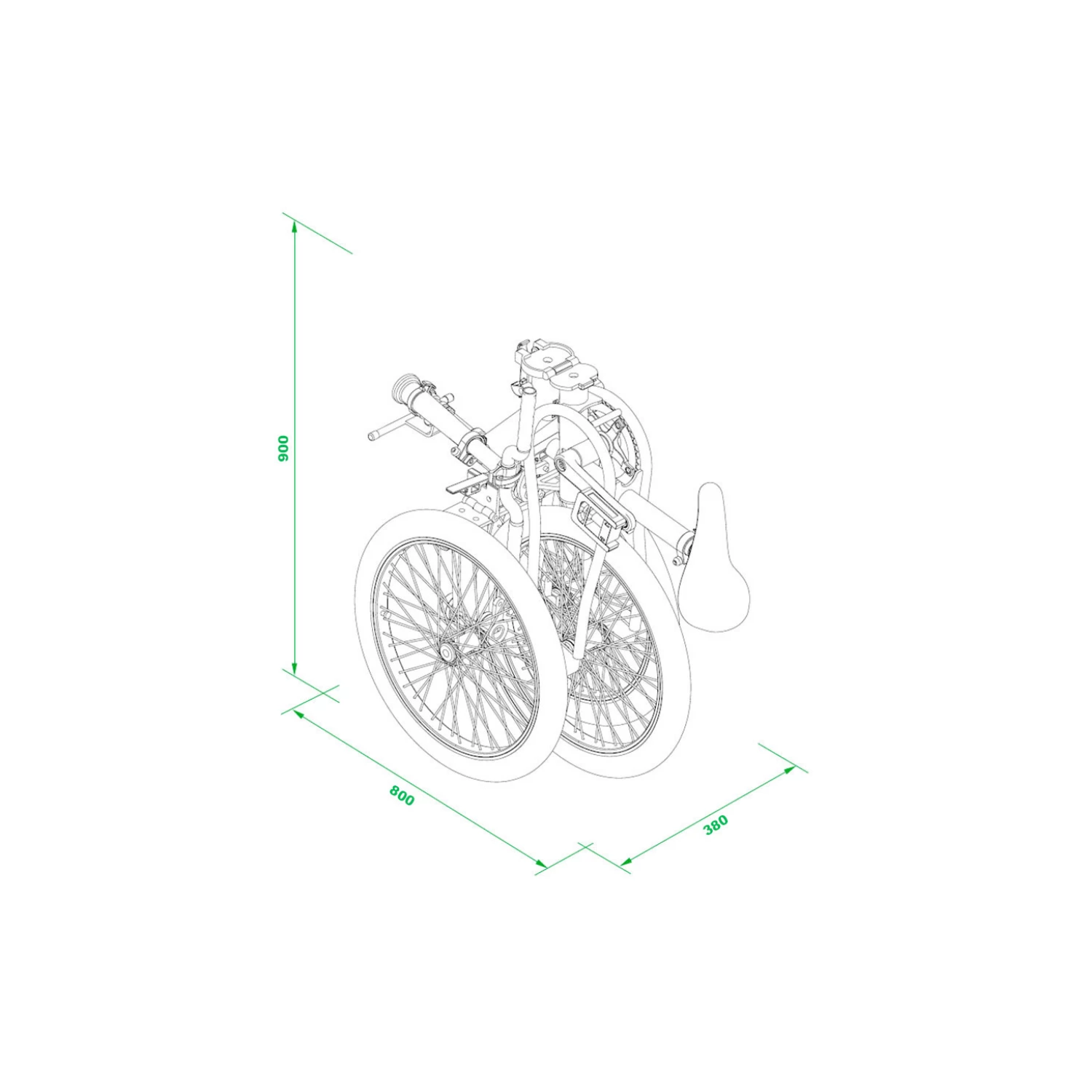 Les mesures du tricycle pliĂ© sont 80 x 69 x 39 cm, occupant 75% de moins qu’en position normale.