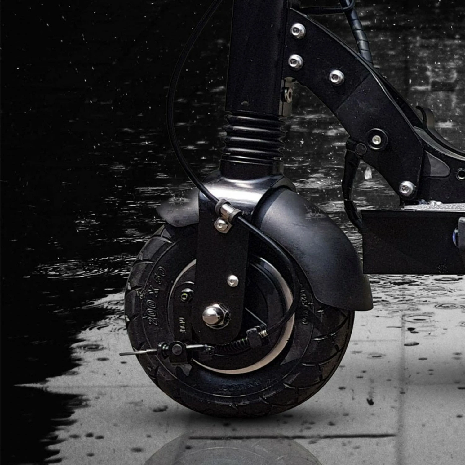 • Son pneu de 8 pouces avant est plein et celui avant est gonflĂ©.Â