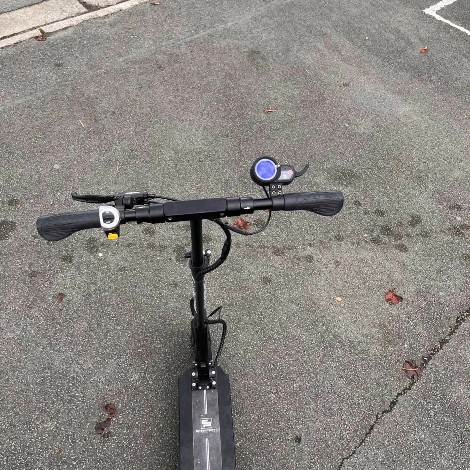 • Le display LCD multifonction permet de visualiser la vitesse, la distance parcourue et le kilométrage total, le levier d’accélération se trouve sur celui-ci.