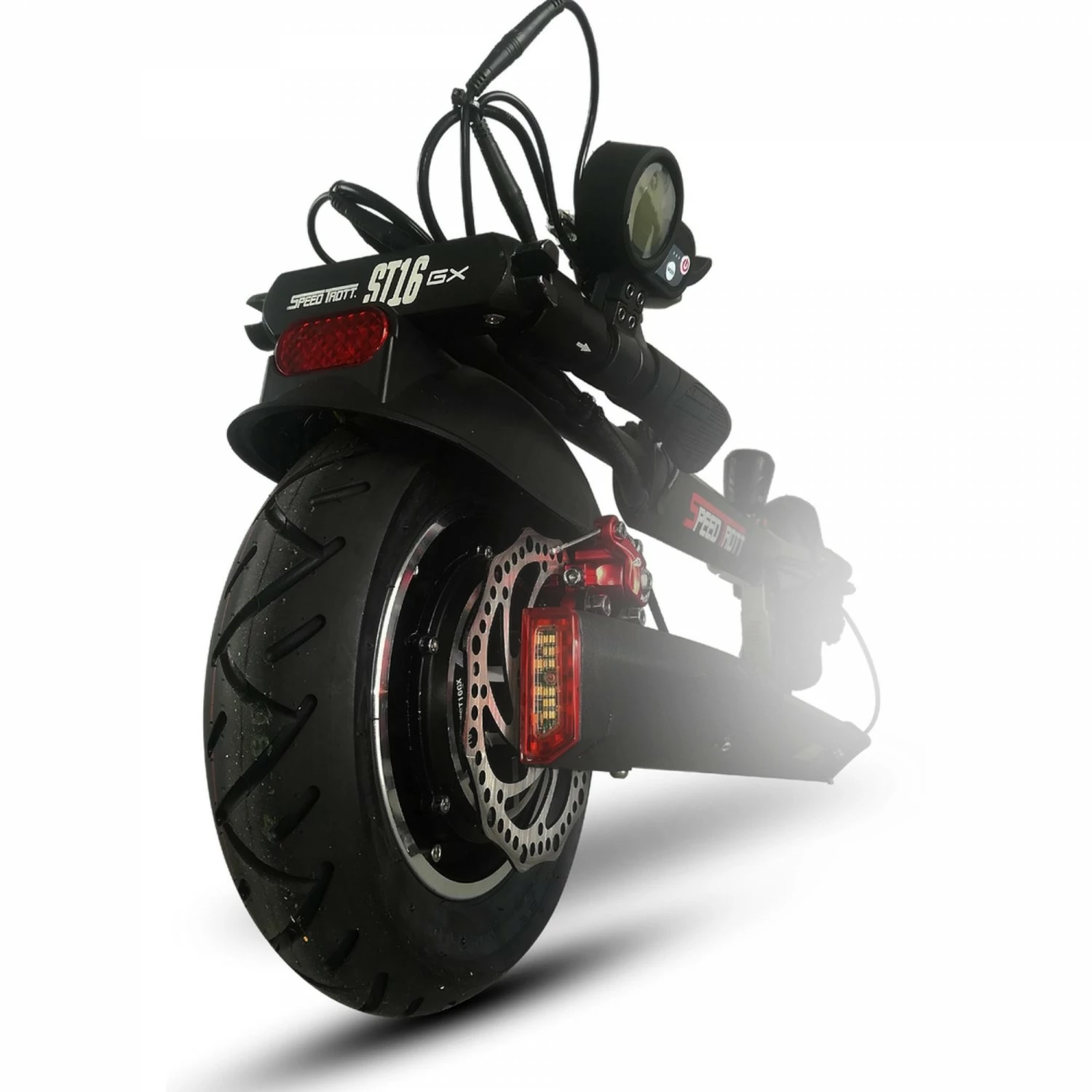 La trottinette Ă©lectrique ST16 GX de la marque SpeedTrott offre un maximum de confort au style inĂ©galable.Â