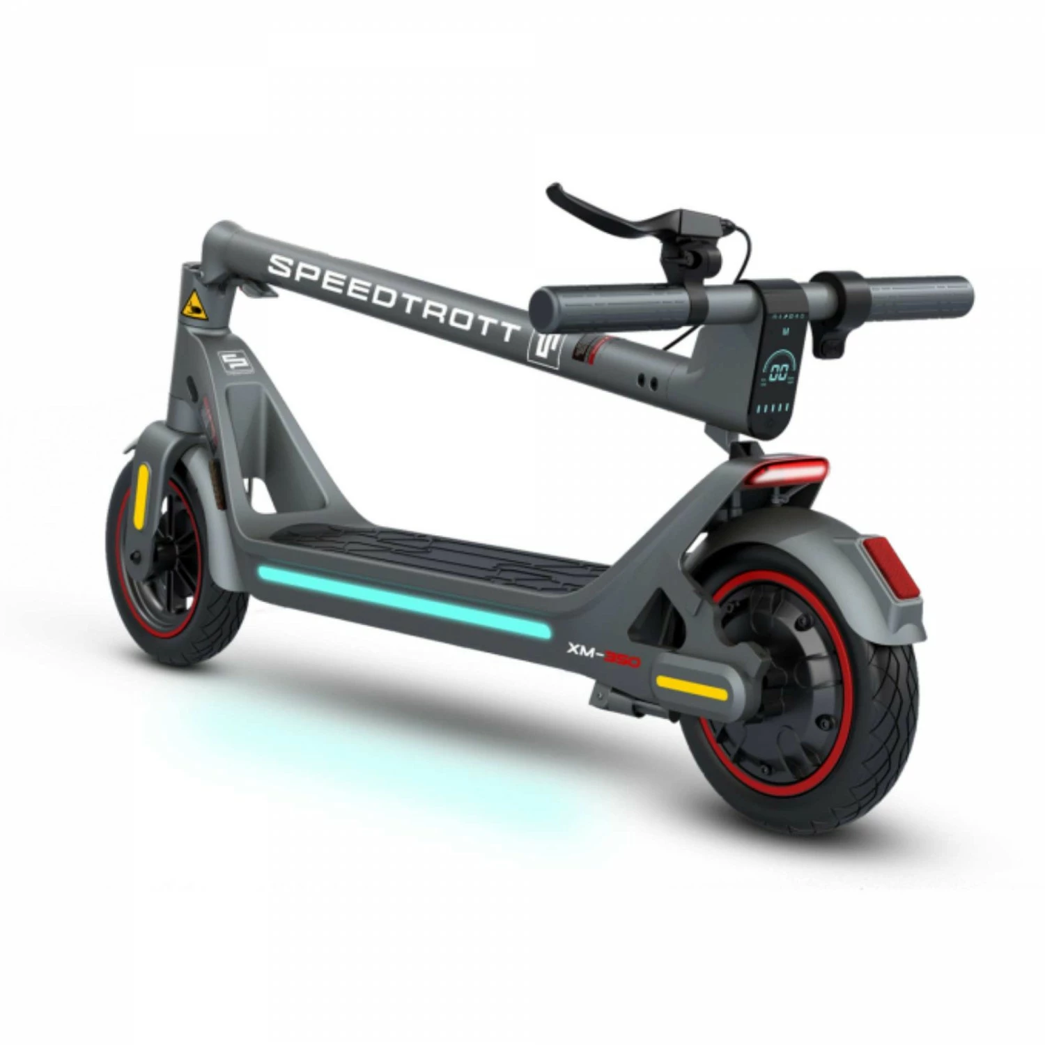 La trottinette électrique XM 350 de la marque SpeedTrott est idéale pour les petits trajets du quotidien. Elle a un petit gabarit, est peu encombrante et entièrement pliable.