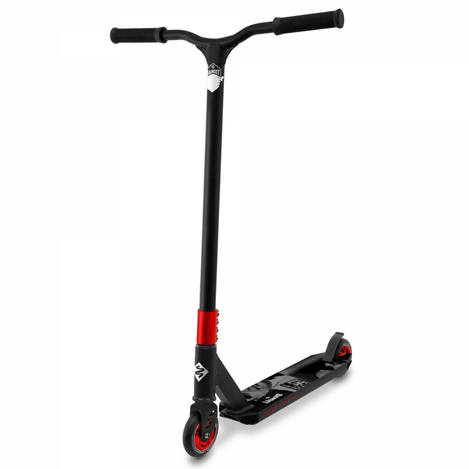 La trottinette de la marque StreetSurfing, Bandit GadFather II de couleur noir et rouge, est conçue pour une utilisation en skate park.Â