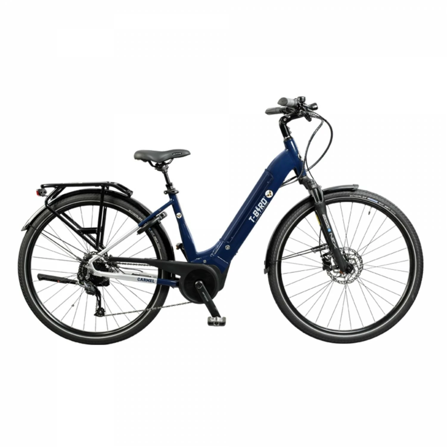 Le vĂ©lo Ă©lectrique Carmel femme de la marque T-Bird est Ă©quipĂ© d’un moteur moteur pĂ©dalier Bosch de 65Nm.Â