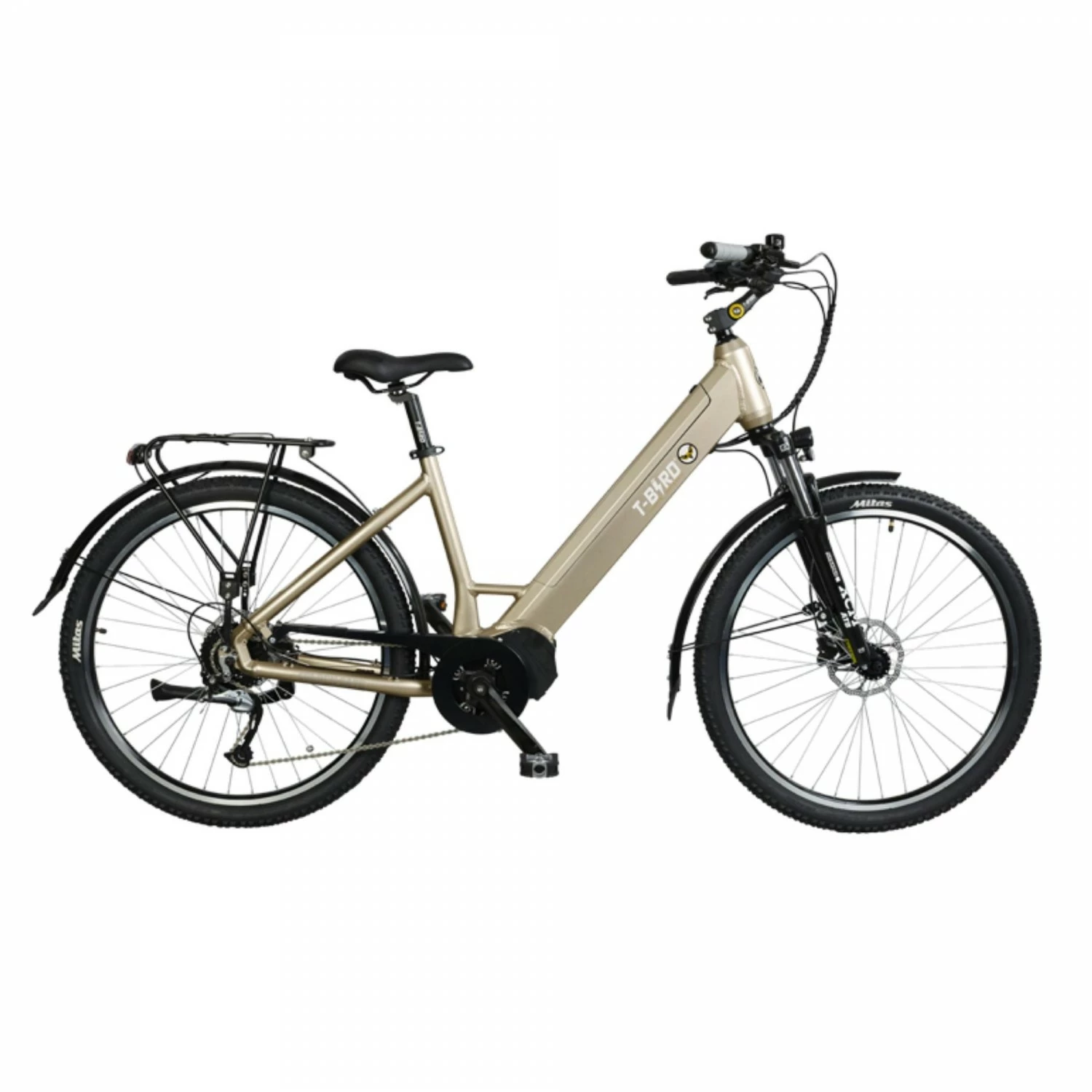 Le vĂ©lo Ă©lectrique Golden Gate femme de la marque T-Bird est Ă©quipĂ© d’un moteur moteur pĂ©dalier très puissant de 80Nm.Â