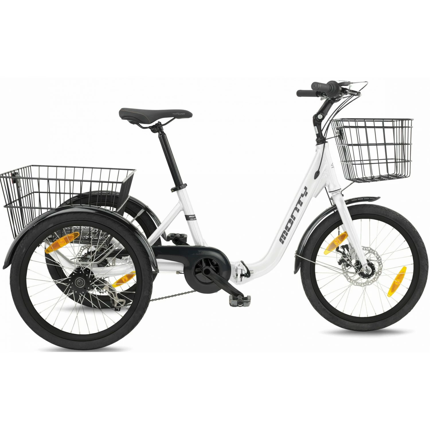 Le tricycle adulte Monty JOG 20 est grâce Ă son cadre en aluminium l’un des tricycles les plus lĂ©gers du marchĂ©. C’est un modèle particulièrement stable grâce Ă ses roues de 20 pouces, il est pliable pour pouvoir ĂŞtre emmenĂ© facilement dans le coffre de votre voiture. Le cadre bas (25 cm) permet de l’enjamber facilement. Le Tricycle Monty JOG 20 est Ă©quipĂ© de 7 vitesses SunRace, c’est un tricycle confortable grâce a sa potence rĂ©glable et ses paniers avant et arrières (fournis).