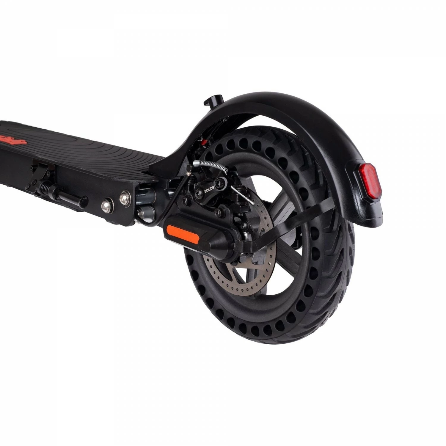 Equipée d’une suspension arrière, d’un frein avant électrique sur le guidon et d’un frein à disque sur la roue arrière pour un freinage optimal.
